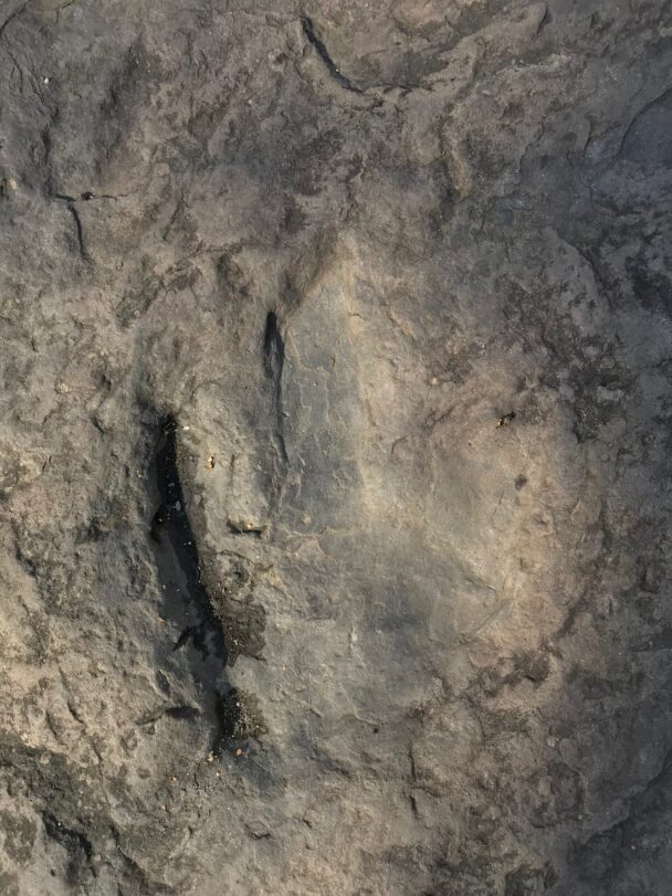 Catch glimpses of the trace fossils visible onsite, including four distinct dinosaurs, stromatolites, fish, and alligator ancestors, plants, and other ancient beings. The larger “Eubrontes” prints were likely made by ancestors of the great Tyrannosaurus rex, standing 15 feet tall and 20 feet long. Look for the 20-plus trackways, which formed the basis for the novel theory that dinosaurs traveled in packs or groups.